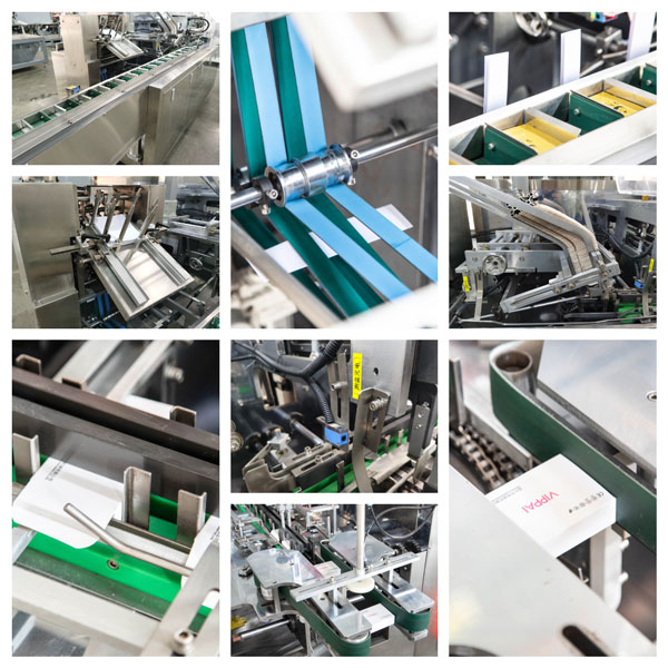 该机可方便地与其他设备组合成一条高效的生产线,增加一个中序机构,也可以通过增加一个送料器进行独立包装。本机最快速度可达120盒/分钟。